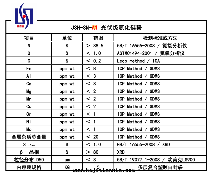 推薦産品:JSH A1 Grade(4N)高(gāo)純氮化(huà)矽粉